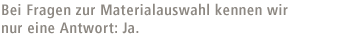 Vorstellungen sind, haben wir etwas zu bieten: Das Material